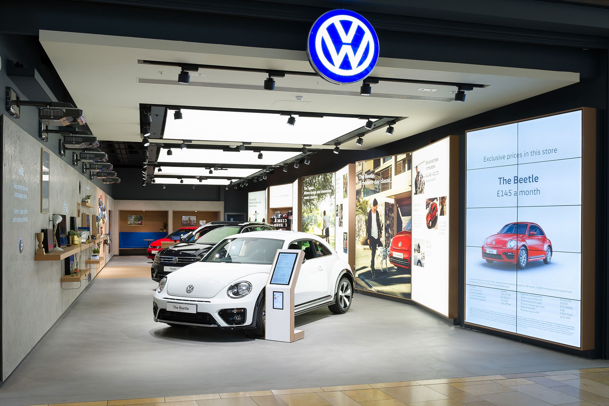 The dealership features a number of 140-inch video walls, which allow sales staff to project images directly onto the big screen to “bring the cars to life in a truly innovative way”, Volkswagen said.