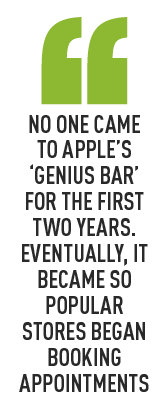 However, it wasn’t plain sailing for Apple Stores. Ron Johnson, a former vice-president for retail at Apple, told the Harvard Business Review that no one came to the ‘genius bar’ for the first two years. Eventually, it became so popular stores began booking appointments.