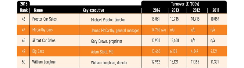 Growth was also relatively modest at The Car People, number five in the market, which increased turnover by £15.6m. Sales director Jonathan Allbones described its Wakefield branch as “at capacity”, but said an increase in revenues will come from its existing Sheffield and Ashton-under-Lyme sites and a fourth dealership – which will be its largest to date – due to be built in Warrington this year. (See our ID50 dealer spotlight on The Car People on pages 26-30.)
