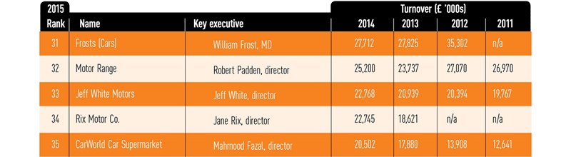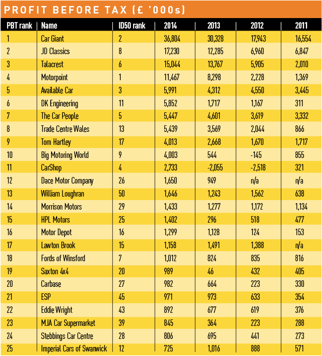 The ID50 grew profits by £40.6m in 2014, with most dealers boosting their earnings as consumer confidence continued to strengthen. Ten groups saw profitability decline, and two – Frosts and Unbeatable Car, both mainstream used car dealers operating in the South of England – posted losses for the year. In the case of Frosts, once a franchised dealer representing Vauxhall and Chevrolet, but now an independent used car dealer, it was the third year of rising losses despite a reduction and property sales.