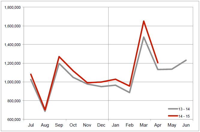 All of the top 10 brands recorded increased volumes compared to April 2014.
