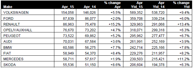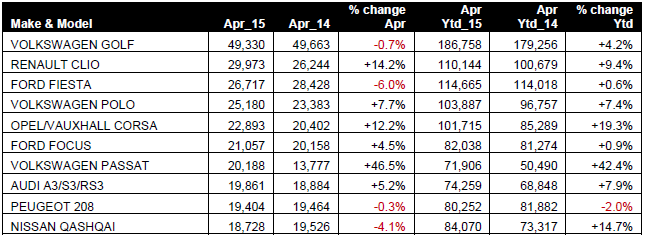 “Although total sales volumes of some popular models slipped in April, the market remains buoyant overall, as demonstrated by the results of the ten biggest-selling brands,” said Walters.