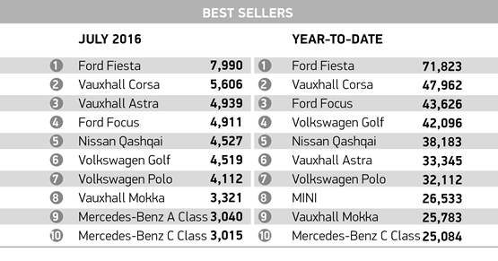 SMMT data for UK best sellers July 2016