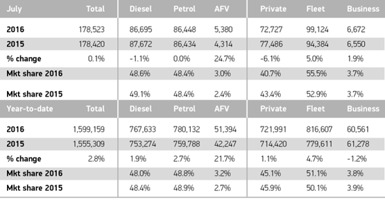 "The total figure also continues to disguise the increasing difference between the performance of the private sales market (where for the fourth month in a row sales have fallen year-on-year) and the fleet market where growth continues to be seen. It is probably still too early to gauge the effect that Brexit is having on the market as most of the cars sold in July will have been ordered prior to the vote so this may provide an additional headwind across the market in August.”