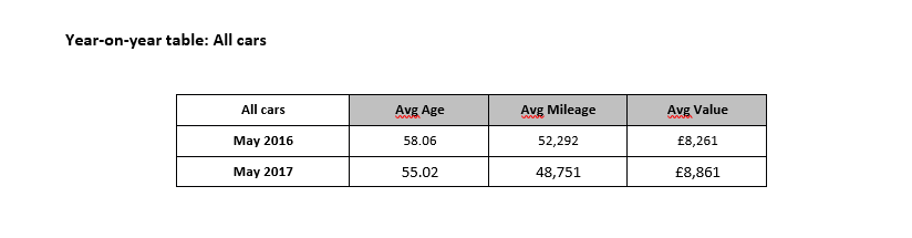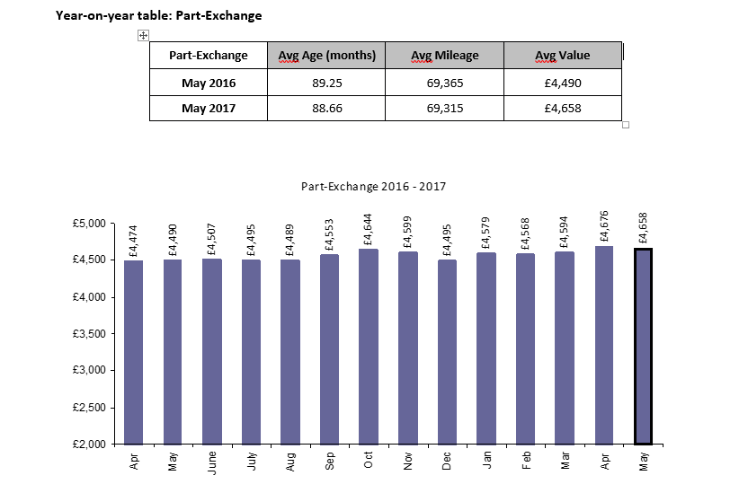 There was a similar small fall in the dealer part-exchange sector, where values averaged £4,658 in May, down just £18 on April’s record figure of £4,676. Longer-term values have been relatively stable, with year-on-year values ahead by £168 (3.7%), with average age and mileage little changed over the period.