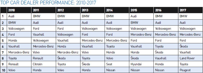 Take Nissan, for example. It has featured in the top 10 for the past three years, but has now been squeezed out at a time when its dealer network has become demoralised by low profitability and poor manufacturer relations.