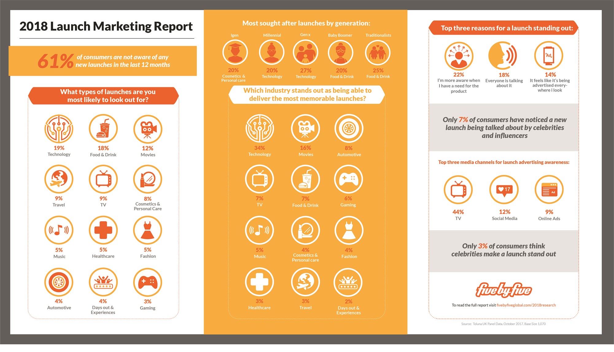 Automotive launches are considered the third-most memorable by all Brits - after technology and new movies - according to a study of 1,070 UK consumers commissioned by Five by Five.