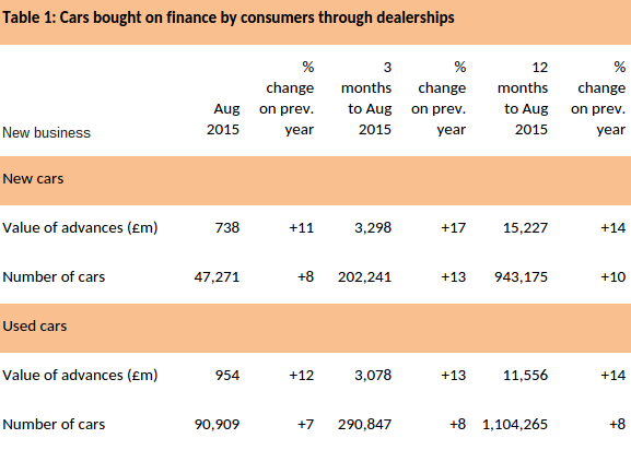 Geraldine Kilkelly, head of research and chief economist at the FLA, said: “Both consumer new and used car finance markets reported relatively robust growth in August, ahead of the introduction of the new 65 registration plate in September. We expect this growth to continue in the final quarter of 2015.”