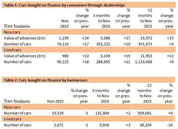 Figures released by the Finance and Leasing Association (FLA) show that the point-of-sale consumer new car finance market saw new business growth of 17% by volume and 24% by value in November 2015, compared with the same month a year earlier.