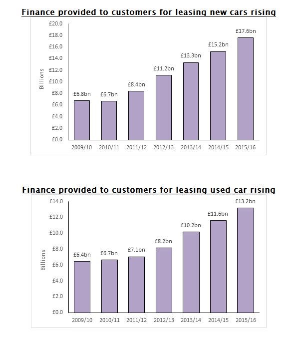 The past five years has seen the amount of money being advanced in the UK to finance car purchases double to £30.8bn in lease finance in 2015-16, up from £13.4bn in 2010-11, according to the FLA