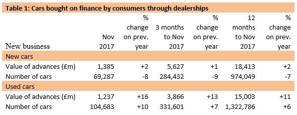 As new car registrations fell by 11.2% during 2017’s penultimate month, the finance market also suffered a decline but managed to increase by 2% over the same period.