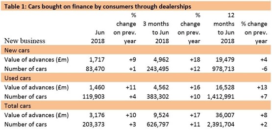 In the POS consumer used car finance market, new business was up 4% by volume and 11% by value in June, compared with the same month in 2017.