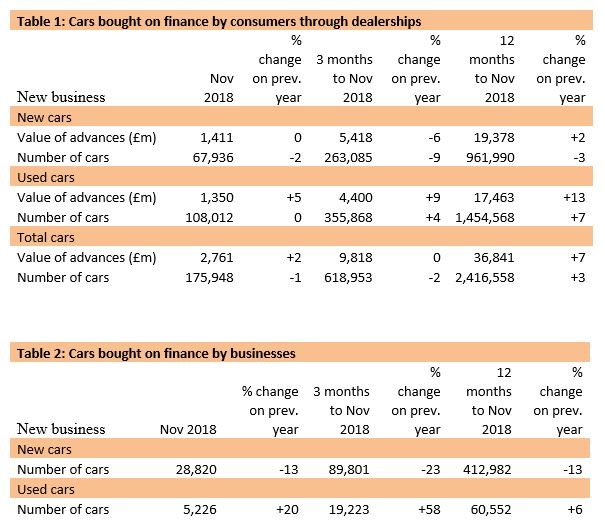 But while the total of 175,948 vehicles sold on finance during the penultimate month of 2018 marked a decline year-on-year, the value of advances increased by 2% overall to a total of £2.76 billion.