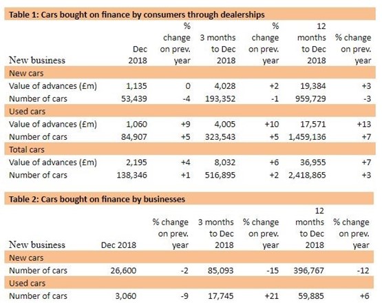 New business in the point of sale (POS) consumer car finance market grew 1% by volume (138,346) and 4% by value (£2.2bn) in December 2018, compared with the same month in 2017.