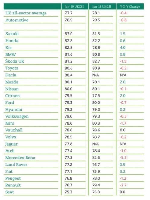 A national measure of sentiment across the country, the research asks 45,000 consumers to rate their experiences of dealing with nearly 260 different companies across 13 sectors, including those in the motor industry.