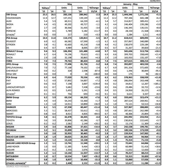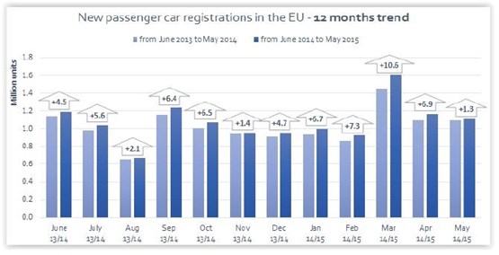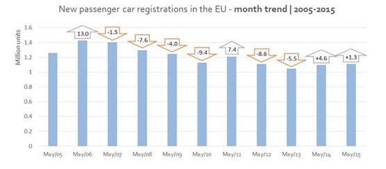 Demand for new passenger cars in Europe (EU) increased for the twenty-first consecutive month in May, by 1.3% (1,109,893 units), according to ACEA.
