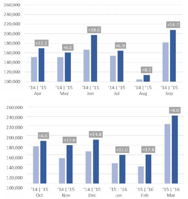 “Considering the huge results recorded in 2015, it is encouraging to see that the market is continuing to perform well on the back of last year’s success.”