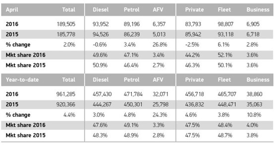 The market growth in April was led by the fleet and business sectors, with respective increases of 6.1% and 2.8%.