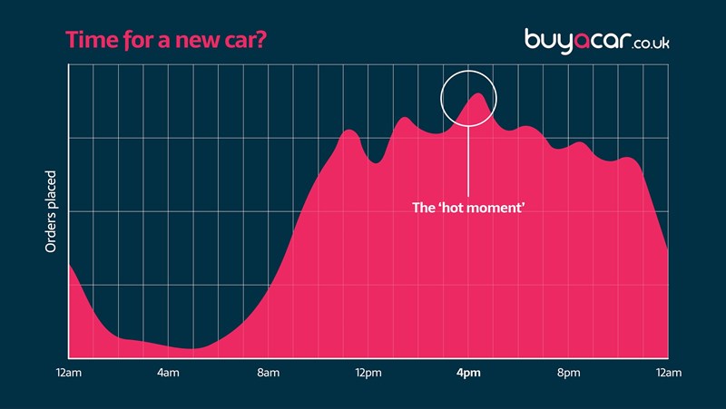 “What’s more surprising is how four o’clock on a Monday afternoon consistently proves to be such a popular moment of decision for online car-buyers, rather than lunchtime or evening.”