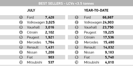 The top 10 best sellers show a telling picture of the market share between each manufacturer as the July top 10 almost replicates the top selling brands year-to-date, with only Citroen and Peugeot swapping places.
