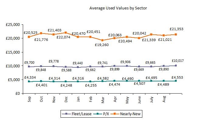 Values in the fleet and lease sector climbed by £127 (1.3%) in September compared to August, to reach £10,017, the highest point on record.