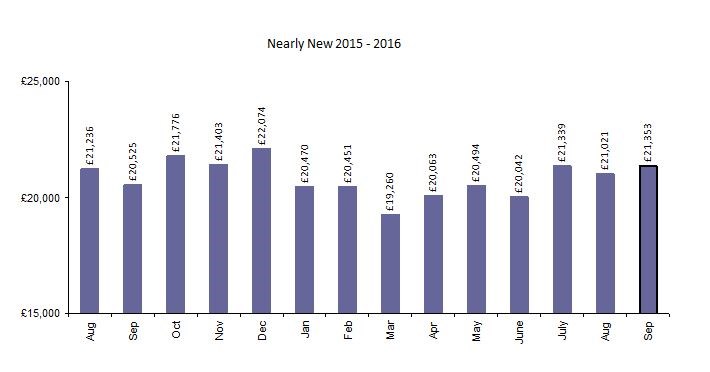 Nearly new-values rose £332 to £21,353 during September, meanwhile – up from £21,021 in September last year – as values part-exchange cars improved by £64 to a new highpoint of £4,553.