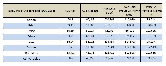 BCA reported that convertible values had held up, while 4x4 values are likely to rise in line with the onset of colder conditions in the weeks ahead.