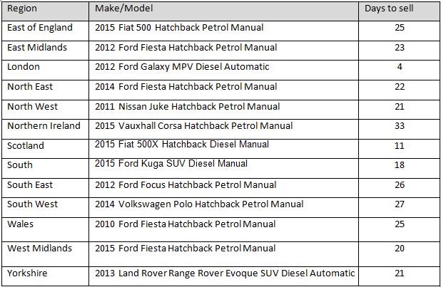 > Fastest selling used cars in your region