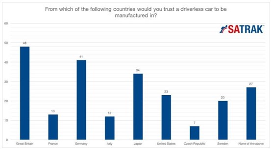 Outside Great Britain, where 48% of people indicated trust, 41% of people said that they would trust German driverless technology.