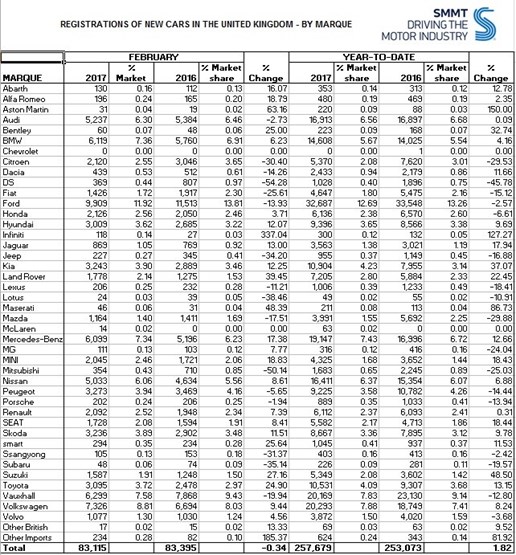 Mike Hawes, SMMT chief executive, said: “February is traditionally one of the quietest months of the year and a steady performance was expected following another year of record growth in 2016.