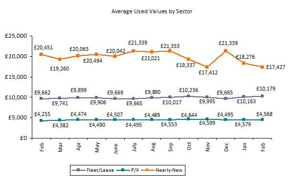 Dealer part-exchange values were effectively static in February, falling by just £11 to £4,568 over the month.