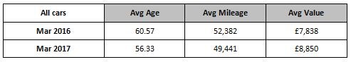 The headline average value was up £28 to £8,850 as it reached a record figure for the second month running, with average age and mileage fell by four months and 3,000 miles.