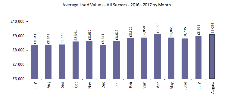 Values rose in the dealer part-exchange sector in August, improving by £48 (0.7%) to £4,675.