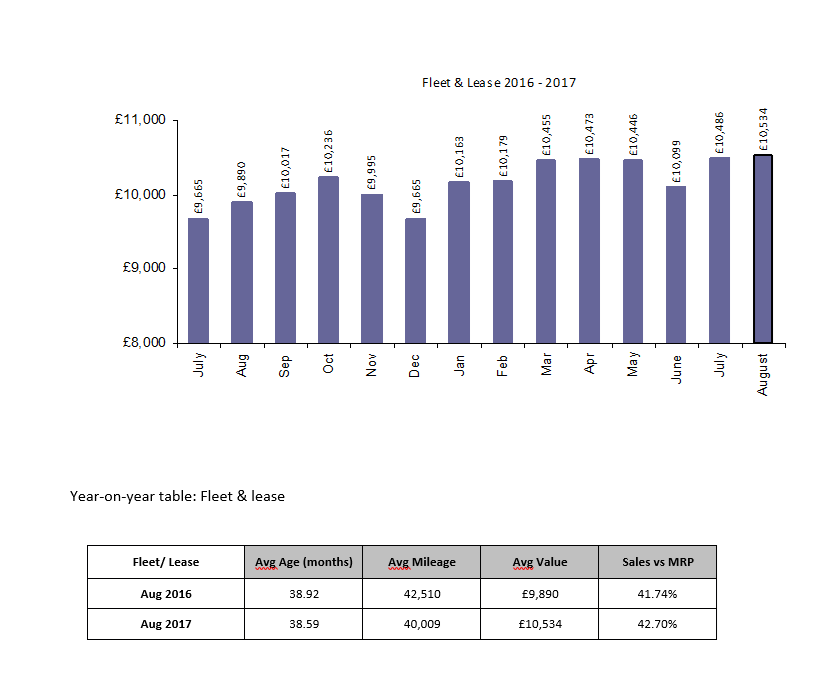 Average values in the fleet and lease sector improved by £48 in August to £10,534, equivalent to a 0.4% rise. BCA reported this figure as the highest average monthly value recorded at BCA for fleet and lease stock.