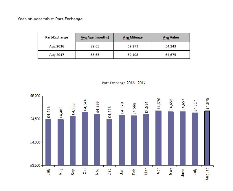 Longer term dealer part-exchange values have been relatively stable during 2017, with year-on-year values ahead by £432 (a significant 10.1% increase), while average age and mileage are little changed over the period.