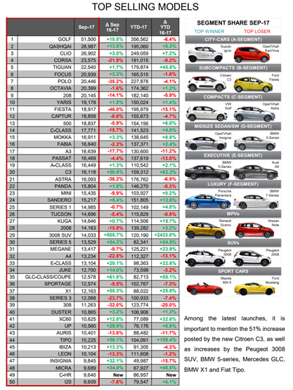 “The segment reached a record market share of 31.6% in September, with 462,000 SUVs registered for the month - an impressive growth of 14.1%. This has taken the year-to-date volume of SUVs to 3.47 million units - 553,000 units more than in the same period last year.”