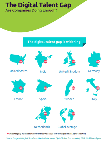 Capgemini's report analyzed the demand and supply of talent with specific digital skills and the availability of digital roles across multiple industries and countries.