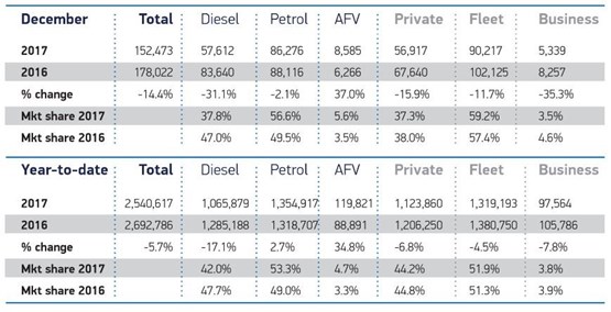 Private, fleet and business registrations were also all down in 2017, with demand from private motorists declining 6.8%, while fleets saw a fall of 4.5%.