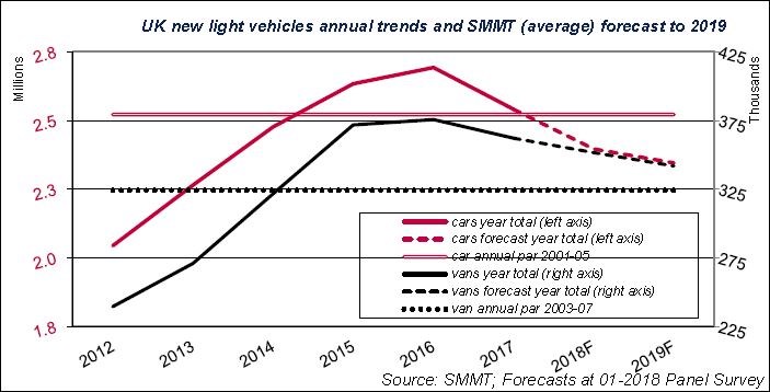But in its latest set of forecasts the SMMT has adjusted its predictions for 2018 by just 0.3ppts in comparison to the projections published in that same set of published figures.