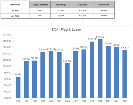 An average January value of £10,513 sees fleet and lease vehicles remain at near-record high, representing a small decline of £91 (0.8%) against December.