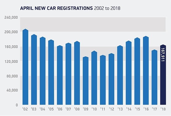 And even despite the apparent uplift, the market remained behind 2016, when new car sales in April totalled 189,505 units, and there had been 961,285 sales since the start of the year.