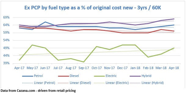 An increase of 8% of original cost new over the course of a year is substantial and likely to continue as residual values bring themselves in line with other fuel types.