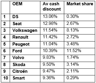 The report revealed Seat and DS dealers were offering the best savings in May.