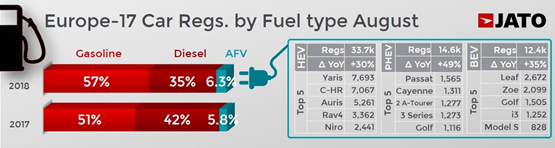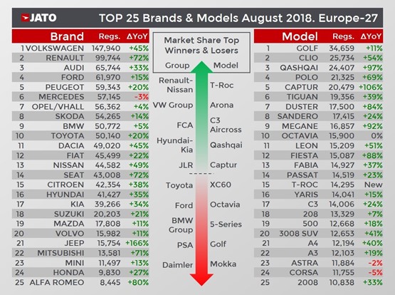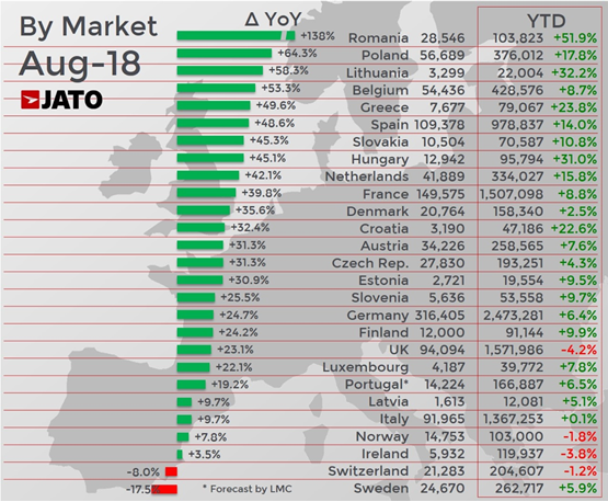 Jato Dynamics revealed in its monthly update on registrations in European market that 30% growth to 1.17 million units was the highest August total for 20 years.