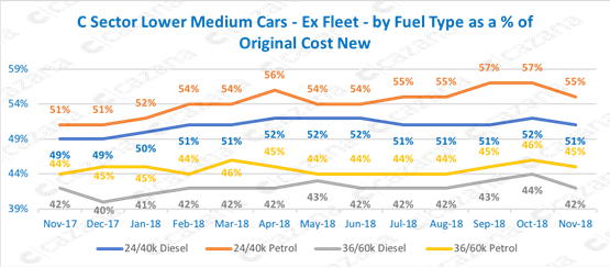 The chart below shows the retail pricing performance for ex Fleet C-Sector cars over the past year: