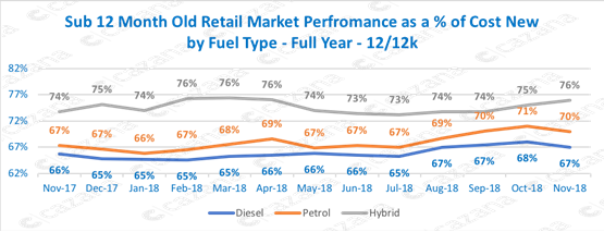 This is probably due to the fact that there are more hybrids coming to the market and realistically speaking hybrids will in all likelihood decline in residual value as supply improves as they sit particularly high in relation to cost new at the moment.