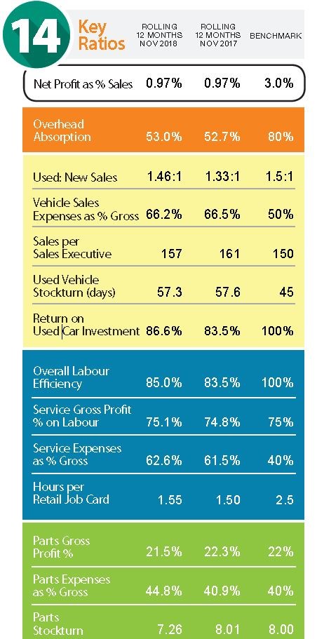 Return on sales remained flat year-on-year, at 0.97%, as return on used car investments rose from 83.5% to 86.6%.
