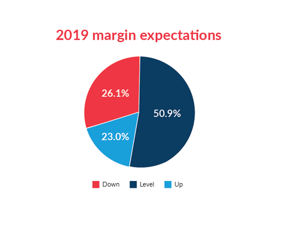 The number of respondents who expected a fall in margins next year dropped to 26.1% compared to the 43.8% who saw margins fall this year.