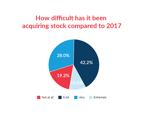 Finding and acquiring used vehicles in the right condition at the right price proved more difficult in 2018 for 80.8% of dealers, according to the One Voice survey, with almost half of those who encountered stock sourcing issues stating that they had found the market ‘very’ or ‘extremely difficult’.