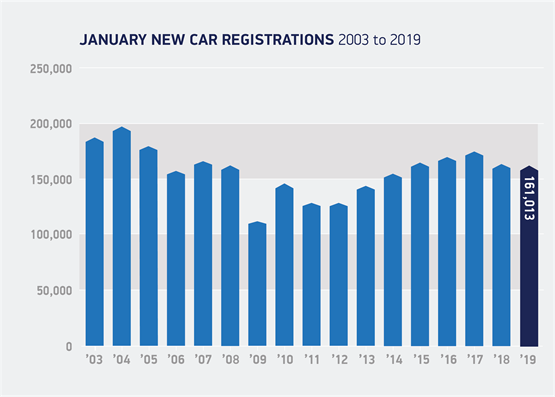 New car registrations declined by 1.6% despite a 2.9% increase in the number of private buyers starting 2019 with the purchase of a new vehicle.